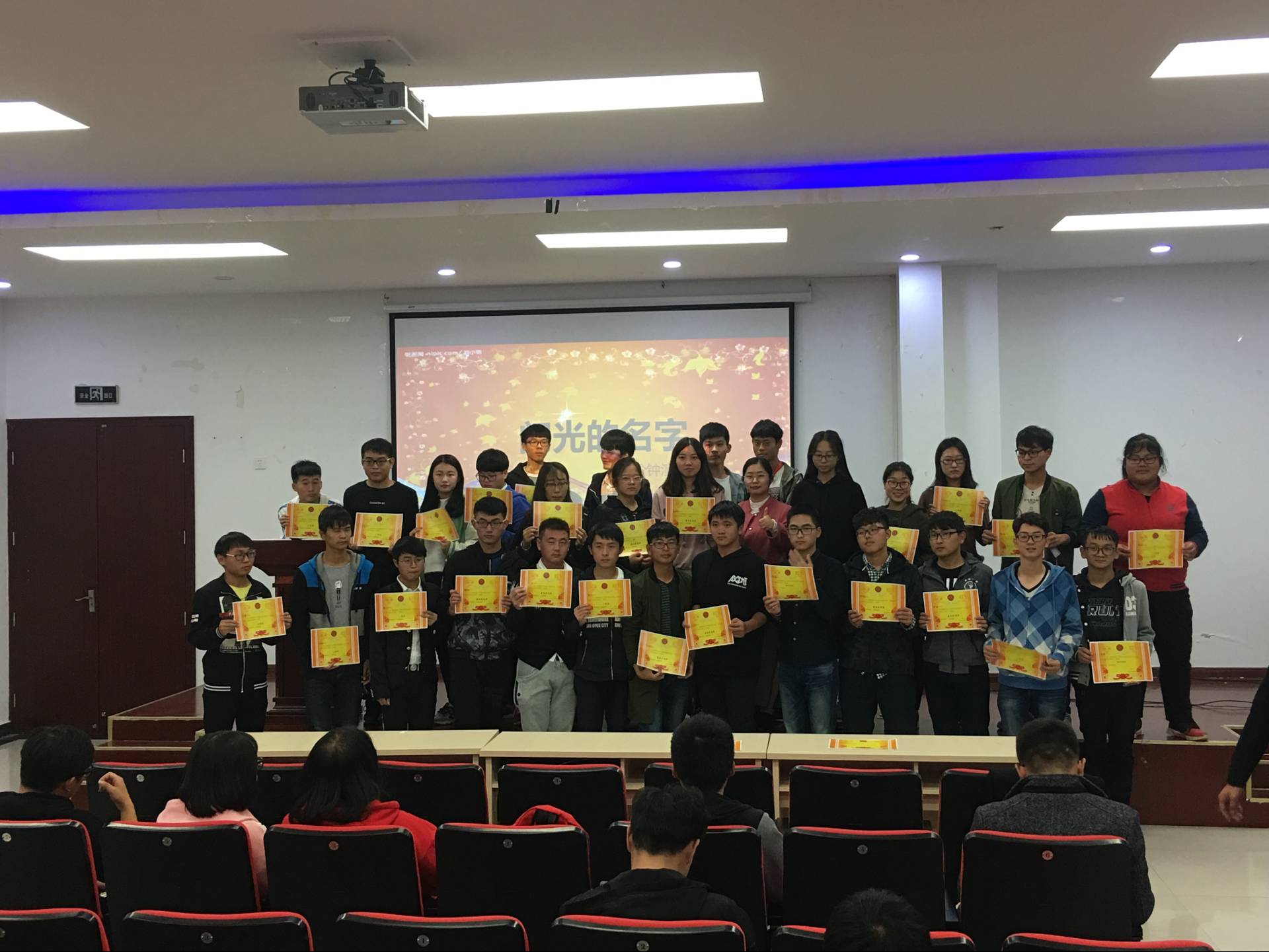2017年11月2日晚六点整,由大学生心理健康中心组织的名为“闪光的名字 一分钟演讲会”比赛在图书馆小礼堂圆满举行,心理健康中心夏雨朦老师、城建心理健康服务团队成员及八十余位选手和各年级观众出席了本次比赛,小礼堂盛况空前,座无虚席。
