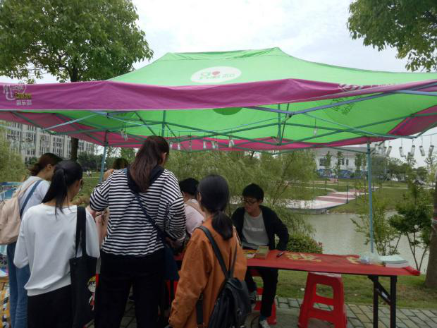 活动开展的早晨,小雨淅淅,清新的风夹杂着泥土的气息。虽然天气不尽人意,但阻挡不了同学们的热情,签名活动如火如荼的进行着,一张小小的贺卡,一根细细的牛皮绳,系下的是同学们美好的期待;许愿瓶在风中摇摆、碰撞,发出清脆的声音,那是美好的愿望在欢呼雀跃。同时写下心愿的同学们可在525日当天收到他们对自己的祝福。