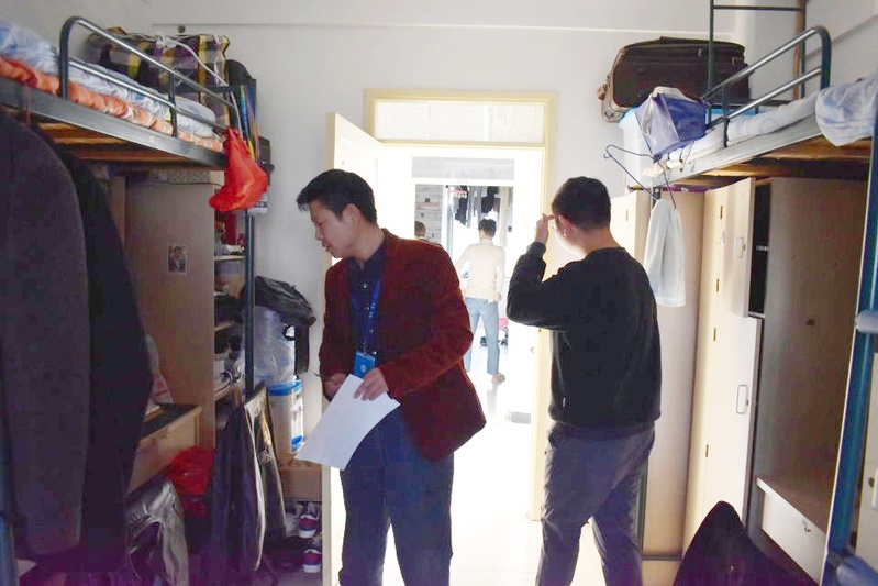 为了加强学生寝室管理,规范学生行为,保障学生在校安全,20181129日,安徽建筑大学城市建设学院在院领导王志建、魏宪友和田园的带领下,各职能部门、系主任助理和辅导员积极参与,对所有学生寝室进行了全面的检查。