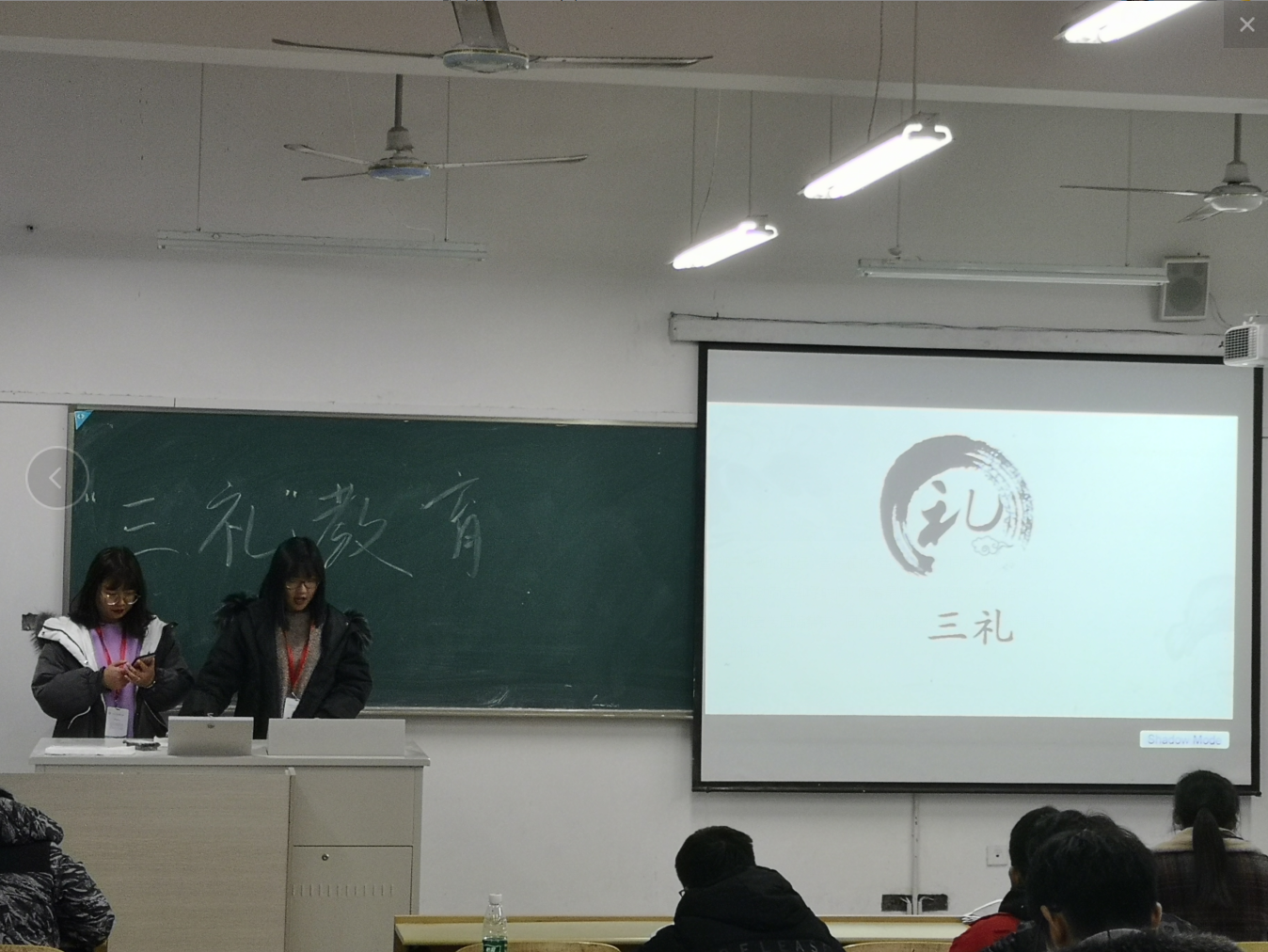 “三礼”宣传活动中,土木系学生会组织部成员以ppt形式对“三礼”文化教育进行了介绍和推广,干事们饱含深情的演讲方式,不时赢得同学们的阵阵掌声,极大的提升了同学们的兴趣。他们用一个个小故事打动了在场的很多观众,许多同学情绪高涨,期间欢笑不断,台上台下,其乐融融。学生会干事们还回答了同学们一些关于“三礼”的问题,同学们大部分也都掌握了“三礼”的知识。随着最后一个班级演讲的结束,本次“三礼”进班宣传活动圆满结束。