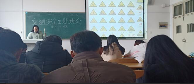 在班会中团支书吴敏为同学们介绍了一些关于交通安全的知识和一些交通标示牌的意思,让大家认识到交通安全的重要性。