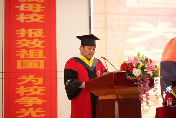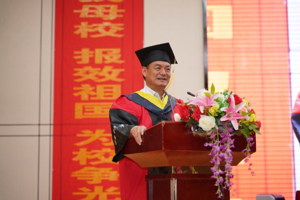 学院董事长林瀚在典礼上致辞,为同学们的优良表现点赞,对同学们能顺利毕业表示热烈的祝贺和美好的祝福!向所有为城建学子成长成才付出关爱与辛劳的父母、师长和朋友们表示衷心地感谢!林瀚在讲话中表示:“在你们即将离开校园之际,作为你们的师长,希望你们尽快融入社会,赢在终点,拥有幸福圆满的人生。”并与同学们分享了自己的四点人生感悟:一要终身学习,起点领先都是暂时的,只有终点胜出才是永恒的定格;二要心怀大爱,努力为社会做贡献,做一个有温度、有担当的人;三要真诚为本,只有以真为本、以诚立身才会有幸福圆满的人生;四要乐观进取,勇敢面对人生中的困难和挑战,不断进取,就一定会笑在终点。