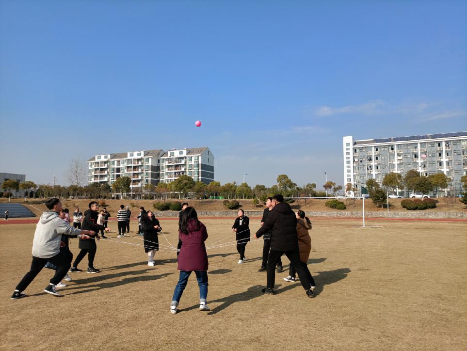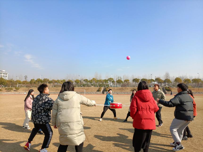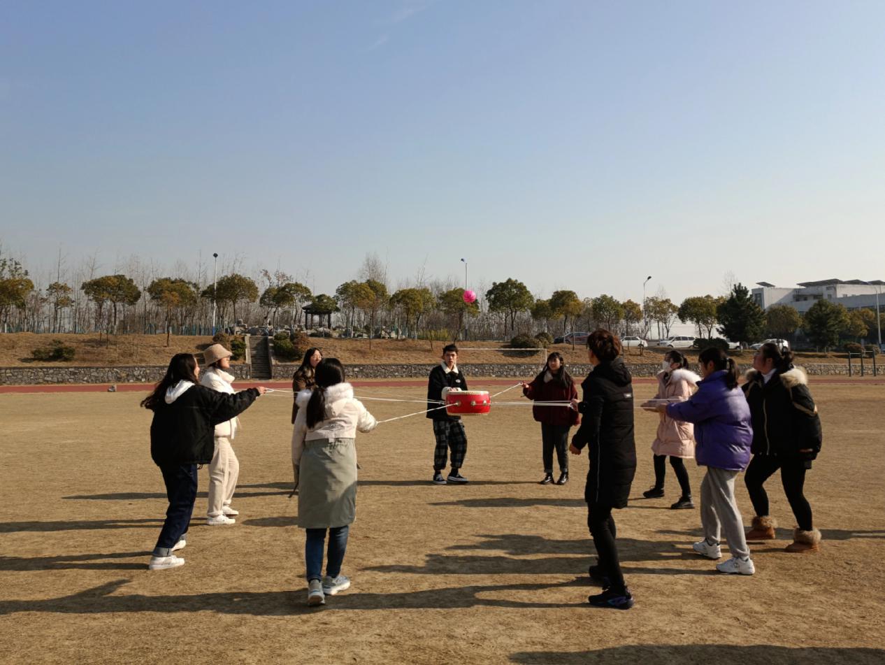 12月20日,“同心鼓”活动于操场举行,本次比赛共有25支队伍,每队10人,成员通过长绳移动鼓面垫球。