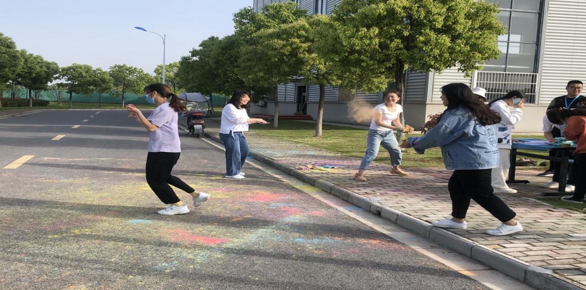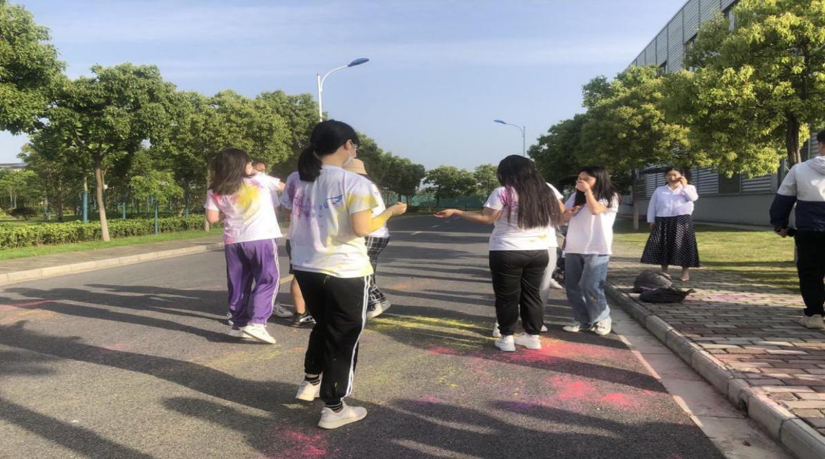 同学们玩的不亦乐乎,甚至还自己互相撒了起来,尽管身上被撒的五彩六色,但也能从中感受到他们非常的快乐,即使被撒,也乐在其中。