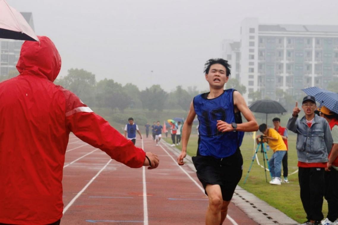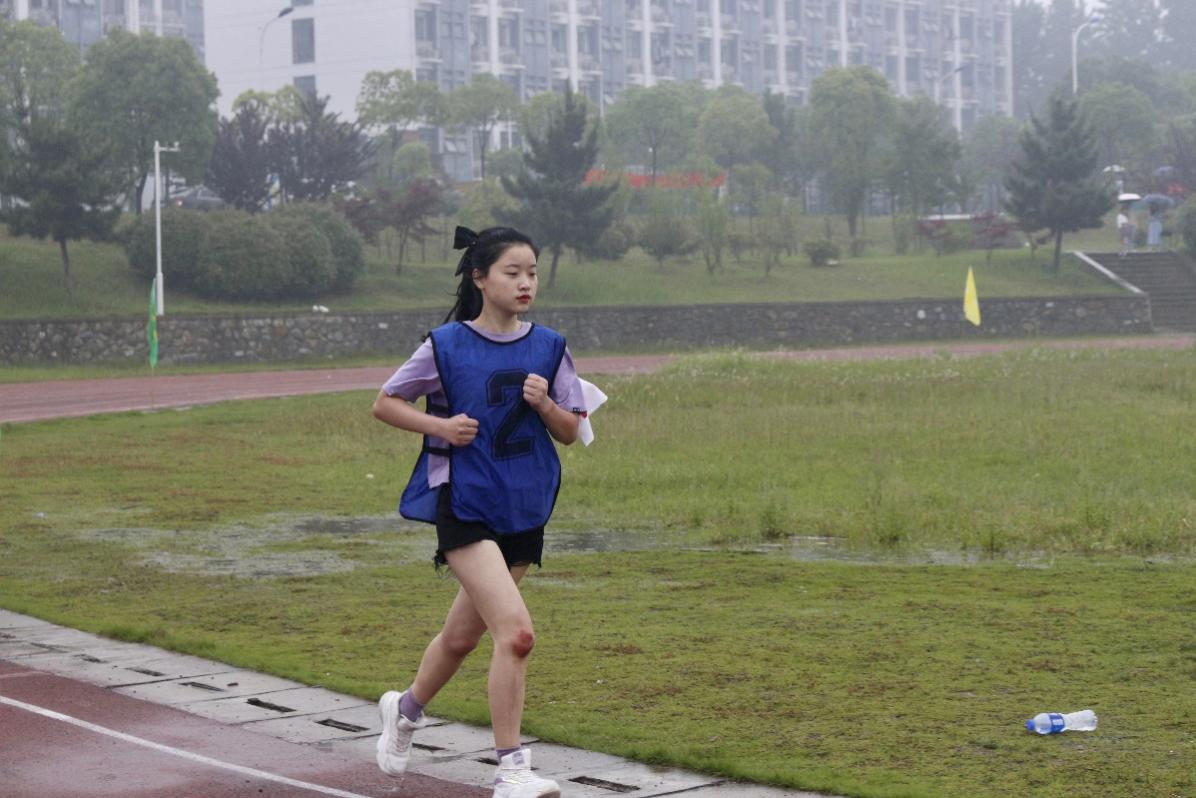 运动会第二日风雨交加,运动场上的雨滴并没有浇灭运动员心中的激情,反而助长了他们心中萌发的竞技之火。一个个热情豪迈的脸上洒着的是雨水也是汗水,奔驰在赛道上,不顾大雨的来袭,无畏风雨,奔跑、跳跃,让我们见证了他们的拼搏向前,勇敢无畏!