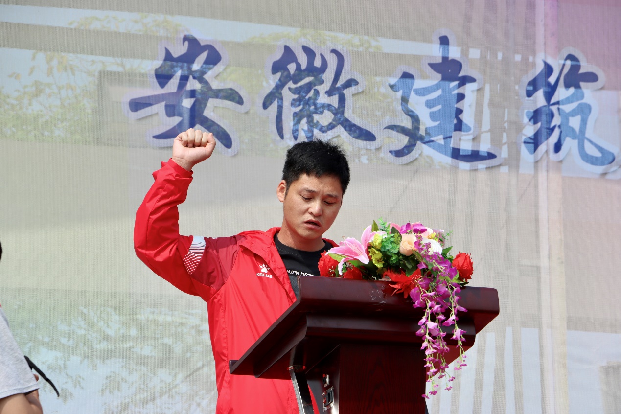 400米国家二级运动员17级机械与电气工程系电子信息工程专业田亮同学、副总裁判长黄家星老师分别代表运动员和裁判员宣誓。