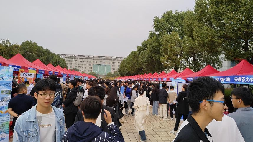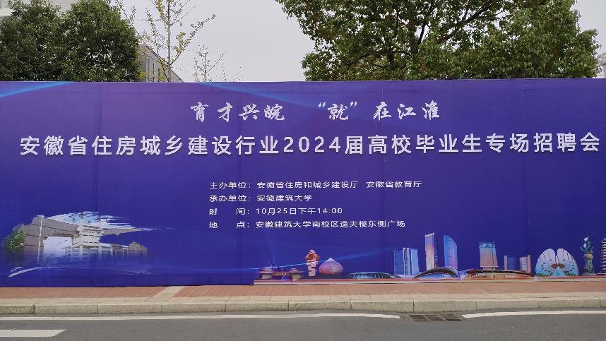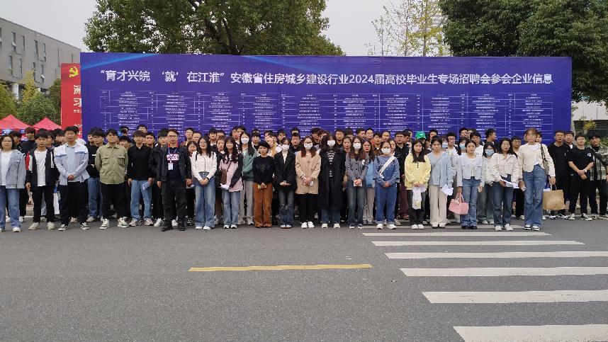 本网讯:搭建校企对接桥梁,赋能行业企业发展。10月25日下午,安徽省住房城乡建设行业2024届高校毕业生专场招聘会在安徽建筑大学南校区逸夫楼东侧广场成功举办。本次招聘会由安徽省住房和城乡建设厅、安徽省教育厅联合承办,共邀请到179家有住房城乡建设相关专业用人需求的建设类企业,为毕业生提供了充足的招聘岗位,我校滨湖校区和北城校区二百余名毕业生受邀参会。