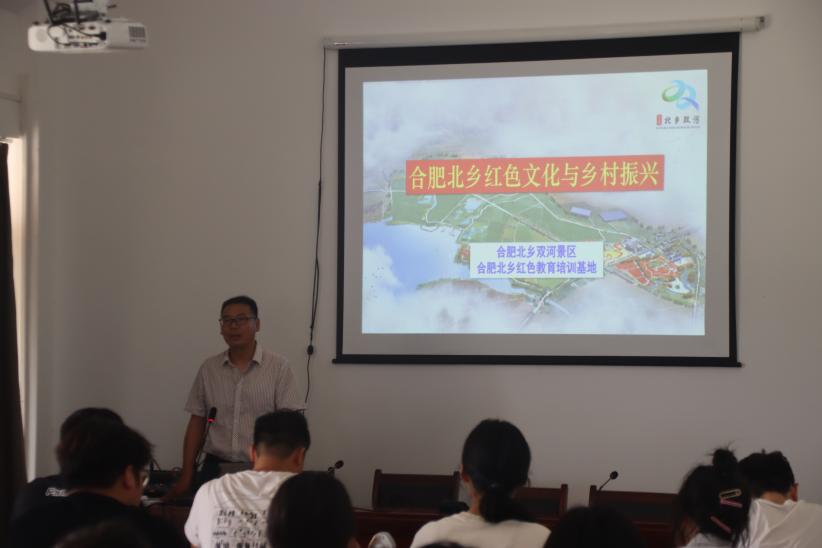 随后,北乡双河国防教育基地负责人、退伍军人张宾进行讲课,张老师紧紧围绕合肥北乡红色文化与乡村振兴展开授课,生动阐述了北乡红色文化的内涵与延伸,同时讲述了崔筱斋后代龙平平在此编写《觉醒年代》的相关历史人文,并指出打算依托我校育人平台成立觉醒社,激发青年学生的红色血脉。