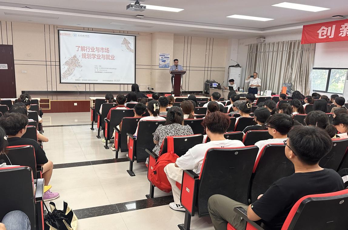 本网讯:为帮助学生更好地规划大学生涯,明确未来职业发展方向,我校在开设大学生职业生涯规划课程的基础上,筹划和举办一系列干货满满的技能型配套活动,旨在通过系统的职业规划教育,引导学生树立正确的价值观,明确个人兴趣与发展方向,为未来的职业生涯奠定坚实的基础。2024年9月13日下午16:30,在滨湖校区图书馆一楼报告厅,成功开展了以“了解行业与市场,规划学业与就业”为主题的公益性讲座。讲座邀请了东方财富证券芜湖文化路证券证券营业部总经理张超、东方财富证券芜湖文化路证券证券营业部投资顾问杨春来,为在场的师生们分享了如何通过分析上市公司年报来获取有助于就业的相关知识。此次讲座是职业规划系列活动的第一场。