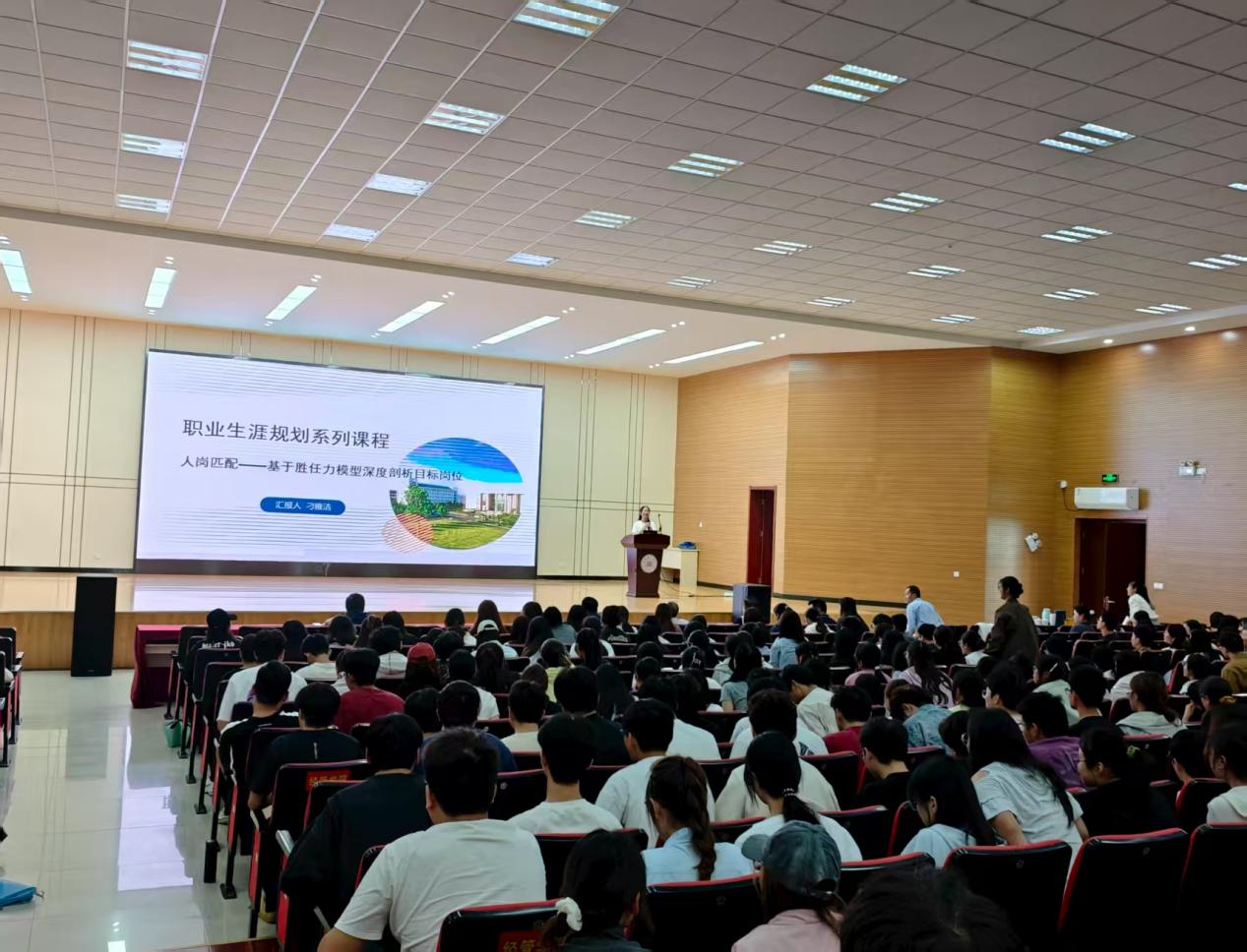 本网讯:9月25日下午,星空在线注册(中国)官方网站-注册登录2026届就业指导公开课在滨湖校区图书馆二楼大礼堂顺利举行。董事长林瀚、校长祝家贵、副校长田园、杨彦友,校长助理何旵升到场听课,滨湖校区全体学工人员及学生处全体工作人员共同参与听课,本次公开课由经济与管理学院副教授刁雅洁主讲,围绕 “人岗匹配——基于胜任力模型深度剖析目标岗位” 主题,为即将开启职业规划的2026 届学子筑牢就业基础。