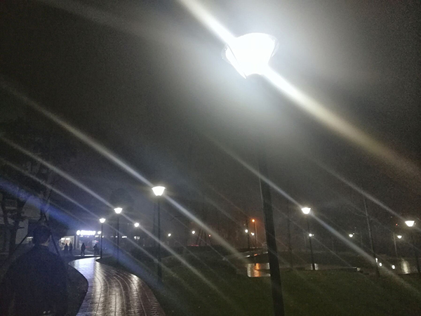 黑夜中的灯光,总能给人一种温暖的感觉。那散发着星星点点的光芒,照亮了些许黑暗,马路上那两排直挺挺的路灯更像是一个个坚毅的战士,时刻保持着清醒,伫立在道路两边为晚归的人们照亮归途。而宿舍就是学生在校园里的家。家的灯光从来不会让人觉得冷清,那种温度可以烘烤得人心里暖洋洋的。同学们踩着清柔的光线,脚步不急不缓,随着路灯明亮的方向,享受光源投来的温和,品味着墨色里的的路灯,这些特殊的指引,让同学们在影影绰绰的灯照下向宿舍走去。这些路灯照亮的不只是一条通向宿舍的柏油路,更像是通向家里的一条时光隧道。
