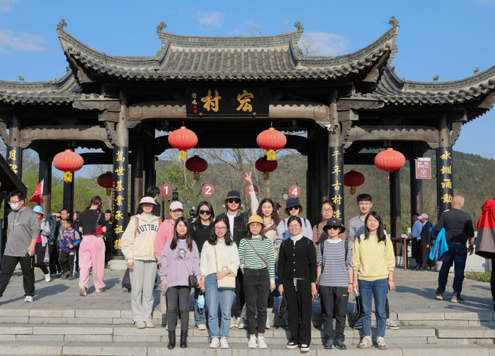 时值四月,春意盎然,正是踏青春游的好时节,大家成群结队,携手攀登黄山,一起欣赏高耸入云的巍峨,聆听春风划过耳畔的声音。在朴素干净的石板小路上一路前行,沿途亲近自然、记录风景、感受生活,在春意盎然的大自然中陶冶情操,充分展现了人与自然的和谐共生。