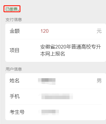 未支付报名费的考生点击支付模块则自动打开支付页面,考生根据提示支付即可(系统暂只支持微信支付)。支付成功后系统返回主页。