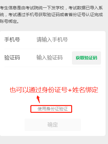 考生信息有考试院统一下发到星空在线注册(中国)官方网站-注册登录,已经导入到本系统,考生可以通过手机号码+短信验证码或者通过身份证号+姓名绑定个人信息。
